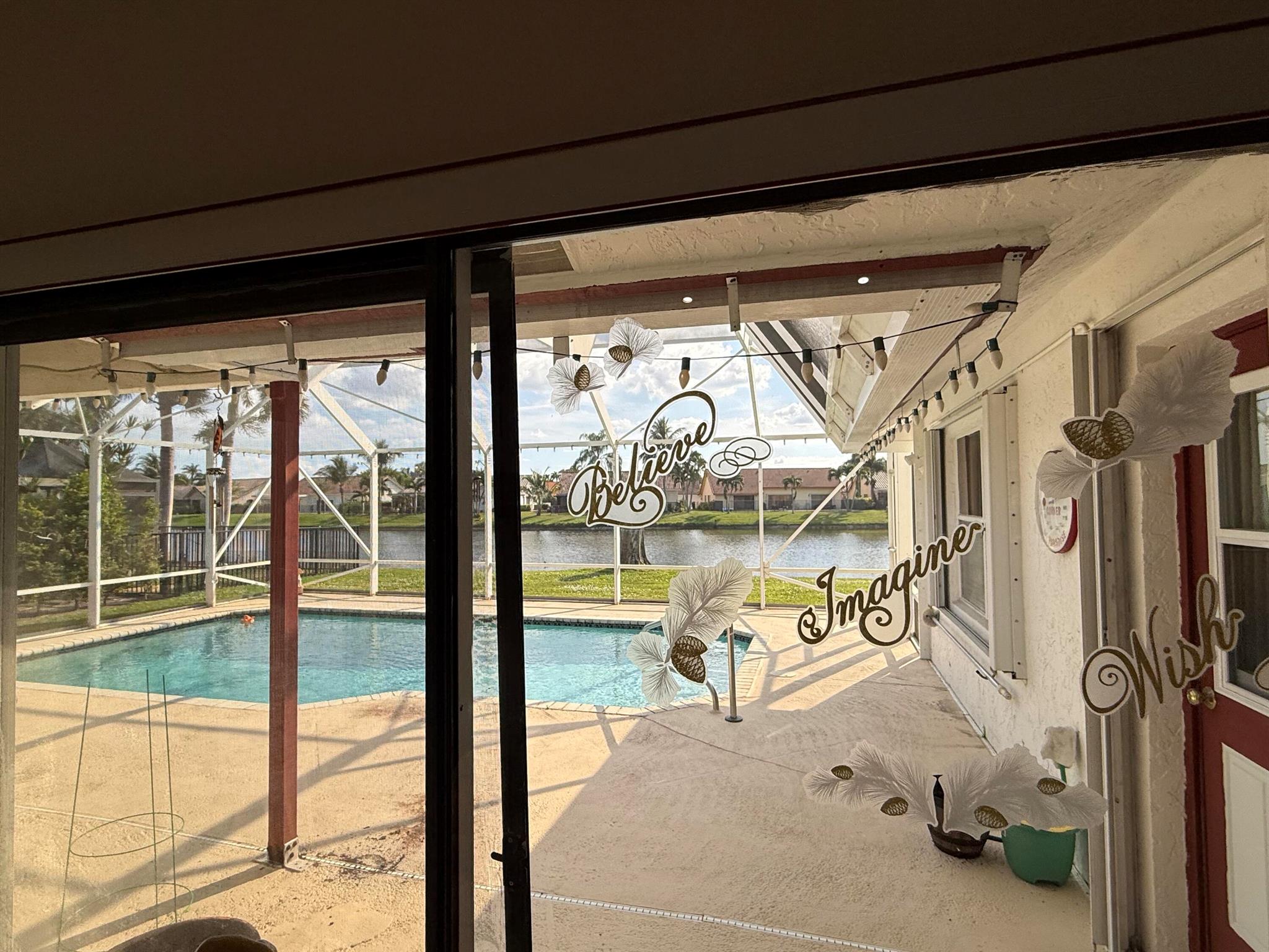 Beautiful 4 bedroom 2 1/2 bath spacious open layout. Updated kitchen and bathroom Beautiful outdoor area with stunning pool overlooking a serene lake !