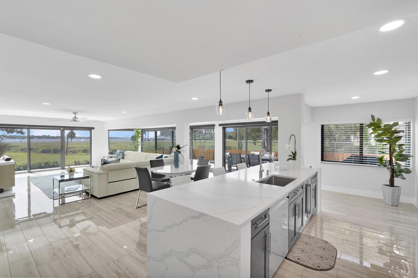 Unmatched in the market! This exquisite & immaculately renovated 3BR/3 full BA end unit on 1st floor comes with a 50 FT. private boat slip & a new 30,000 LBS. state of the art boat lift. Enjoy the stunning & expansive Lake Worth views through impact glass sliding doors. Preferred South East exposure fills the unit with natural light year round. Feels like a private home w/ 3 patios and a private corner entrance. Deep water marina w/utilities, NO fixed bridges, 10 min. direct access to the Palm Beach Inlet, Ocean, and the Bahamas. Enter the boutique community through a man gated entrance under a majestic Oak canopy. Beautiful beaches, golf courses, upscale dining, shopping. Pools, pickle ball/tennis courts! This is absolutely the best location for the avid boater & fishing enthusiast!