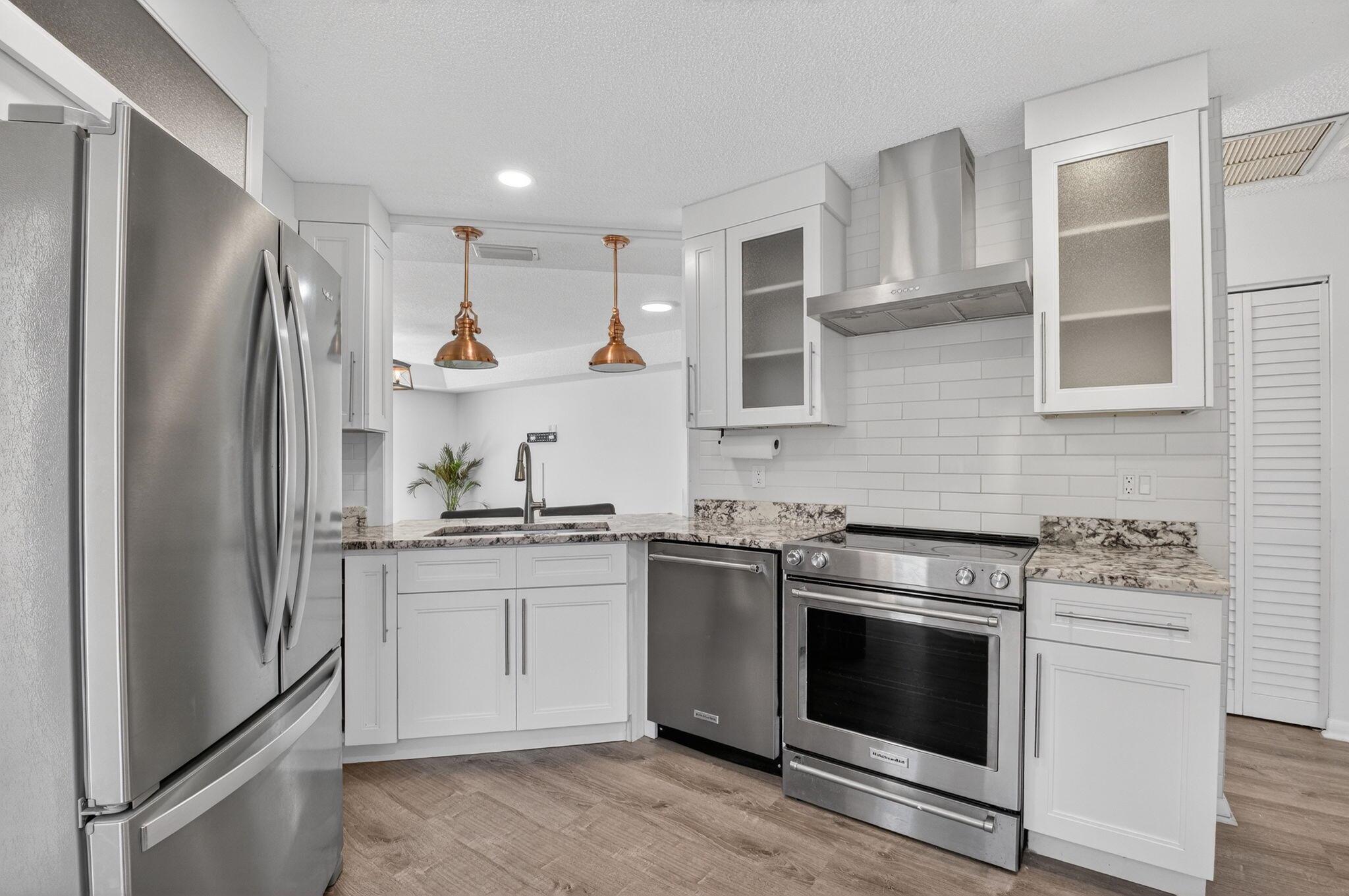 Welcome Home! Come see this beautifully updated 3 bedroom two bath home in Boca Fontana. Complete with wood-look luxury vinyl throughout, high tray ceilings and fresh paint. The beautiful home has white cabinets with a grey and white granite, stainless steel appliances and plenty of room. The open layout overlooks the outdoors and has an accent shiplap wall in the dining room. The primary bedroom overlooks the back patio and has a walk-in closet. The back patio has an area great for entertaining and turf in the backyard.Great schools. Convenient location makes it easy to get to restaurants, shopping or travel. Boca Fontana has tennis courts, pickle ball and two pools. Enjoy the luxury lifestyle Boca Fontana has to offer.