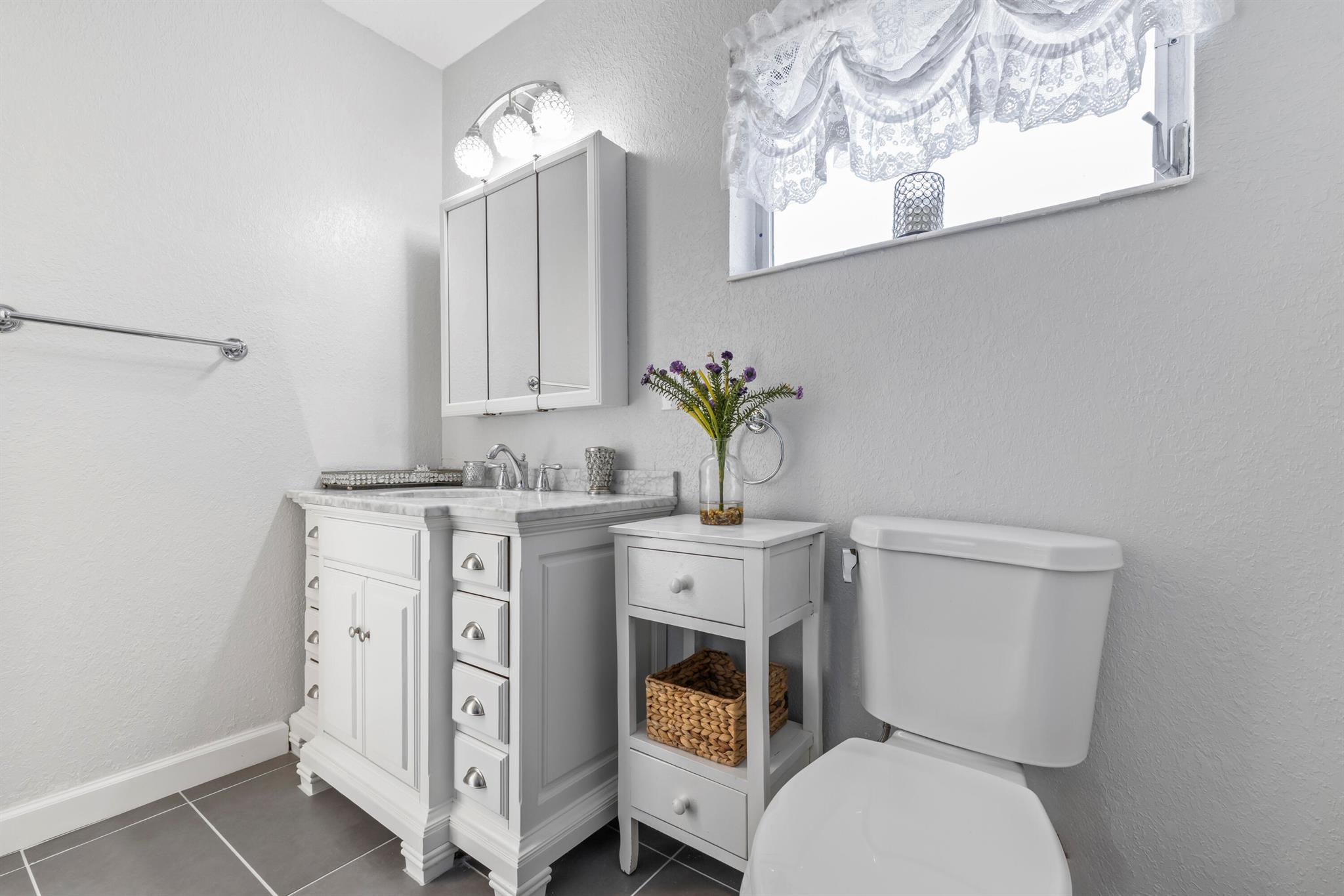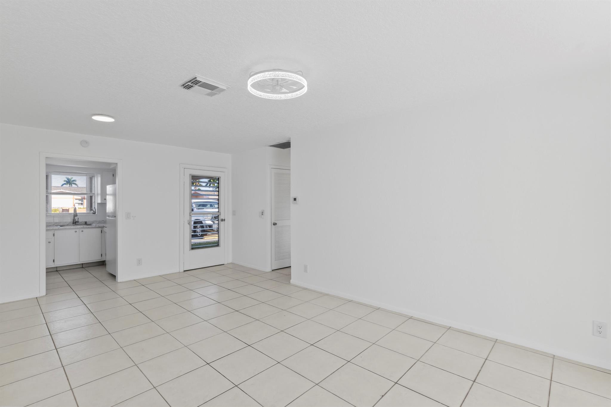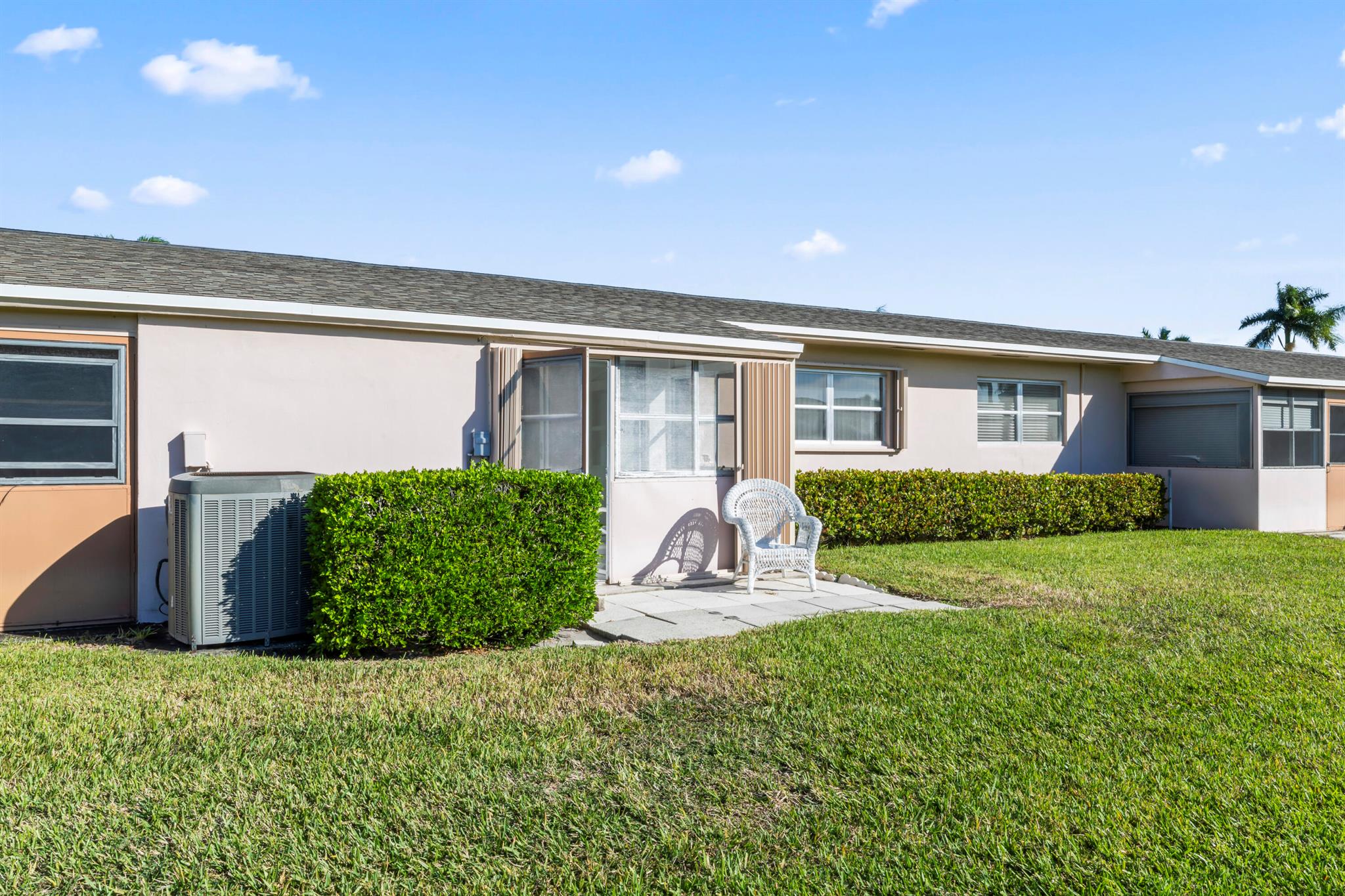 Updated 1 bed, 1 bath villa in the 55+ community of Cresthaven Villas. Features include a new A/C, new countertops, and remote-controlled lighting with ceiling fans. Renovated bathroom with walk-in shower, marble-style tile, glass door, safety bar, new vanity, updated lighting, and chair-height toilet. Tile flooring throughout. Enclosed screened porch with large storage closet. Accordion hurricane shutters on all windows and porch. Common laundry nearby. Parking directly outside the front door. Low $362 monthly maintenance includes cable, water, and internet. Amenities include heated pool, sauna, clubhouse, fitness center, and social rooms. Close to shopping, medical, bus service, and Lake Worth Beach.