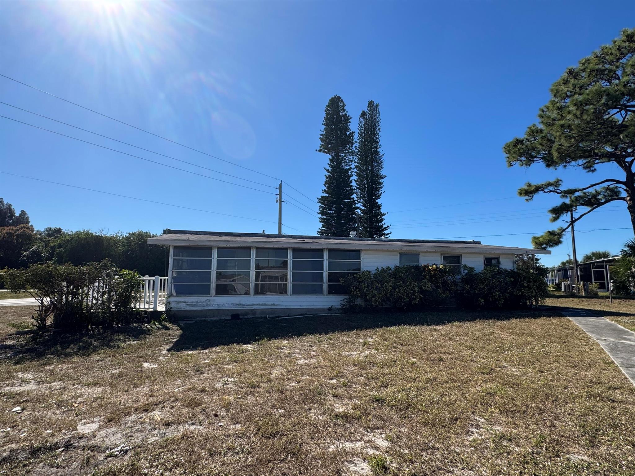 Great opportunity to purchase a corner lot in a manufactured Home community with NO HOA and NO AGE RESTRICTIONS. You own the land so there is NO LAND LEASE. This handyman special can be renovated or removed to put your own Manufactured home. Hobe Sound is a quiet town with many natural areas to enjoy and close proximity to the beach, restaurants and Palm Beach if you need some entertainment in the city.