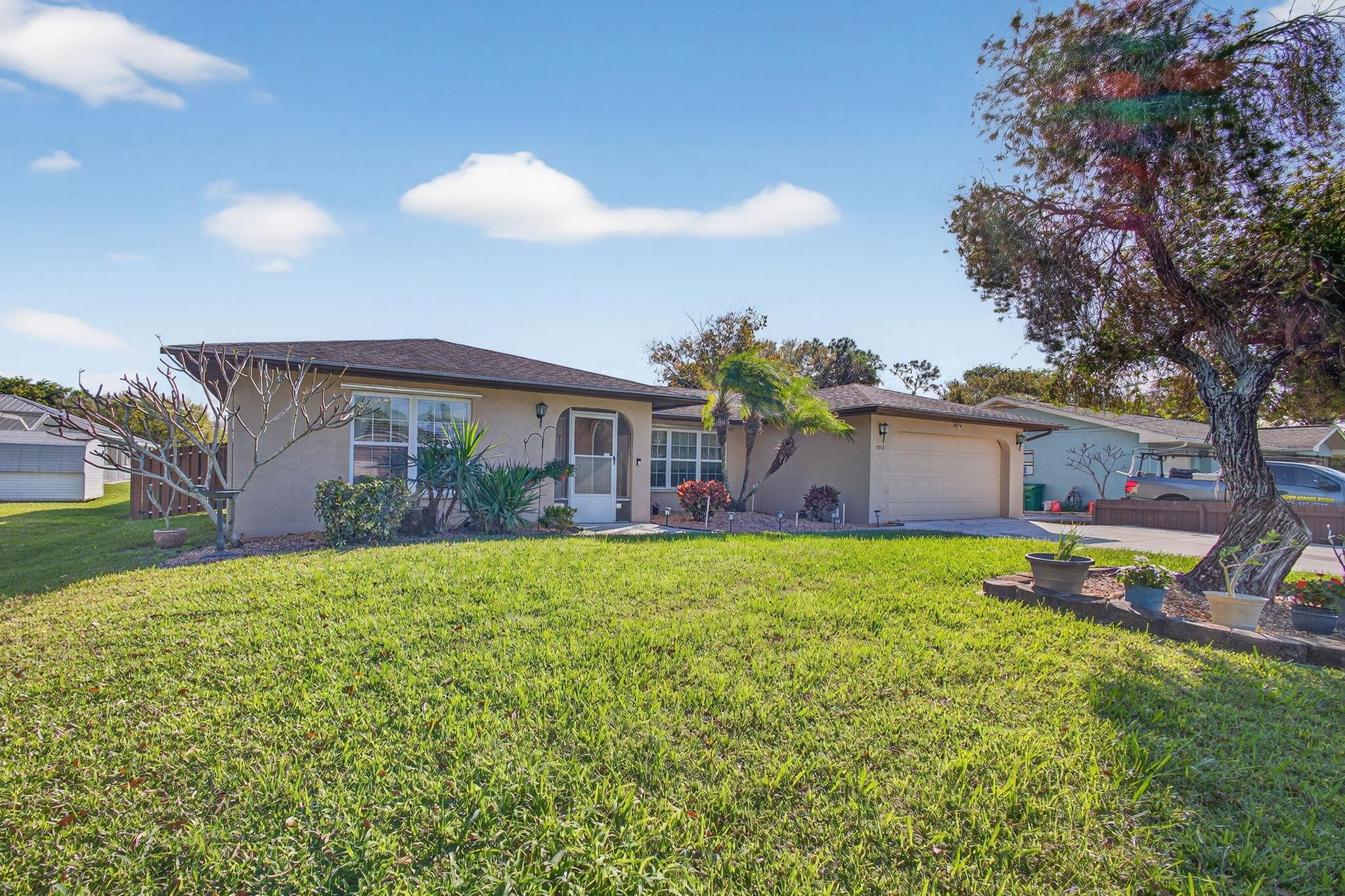 Welcome to this well-maintained 3-bedroom, 2-bath, 2-car garage home located in the desirable Indian River Estates community of Fort Pierce. This property offers a prime location just minutes from area beaches, shopping, dining, and major roadways, while also benefiting from county-only property taxes and public water.The home features a split floor plan, high ceilings, and a unique interior design that provides both comfort and functionality. Vinyl laminate wood flooring runs throughout the main living areas, and the kitchen offers brand new stove, remanufactured Granite, ample cabinet space for storage and everyday use. One bathroom includes a roll-in shower with wheelchair accessibility, adding flexibility for a variety of living needs.