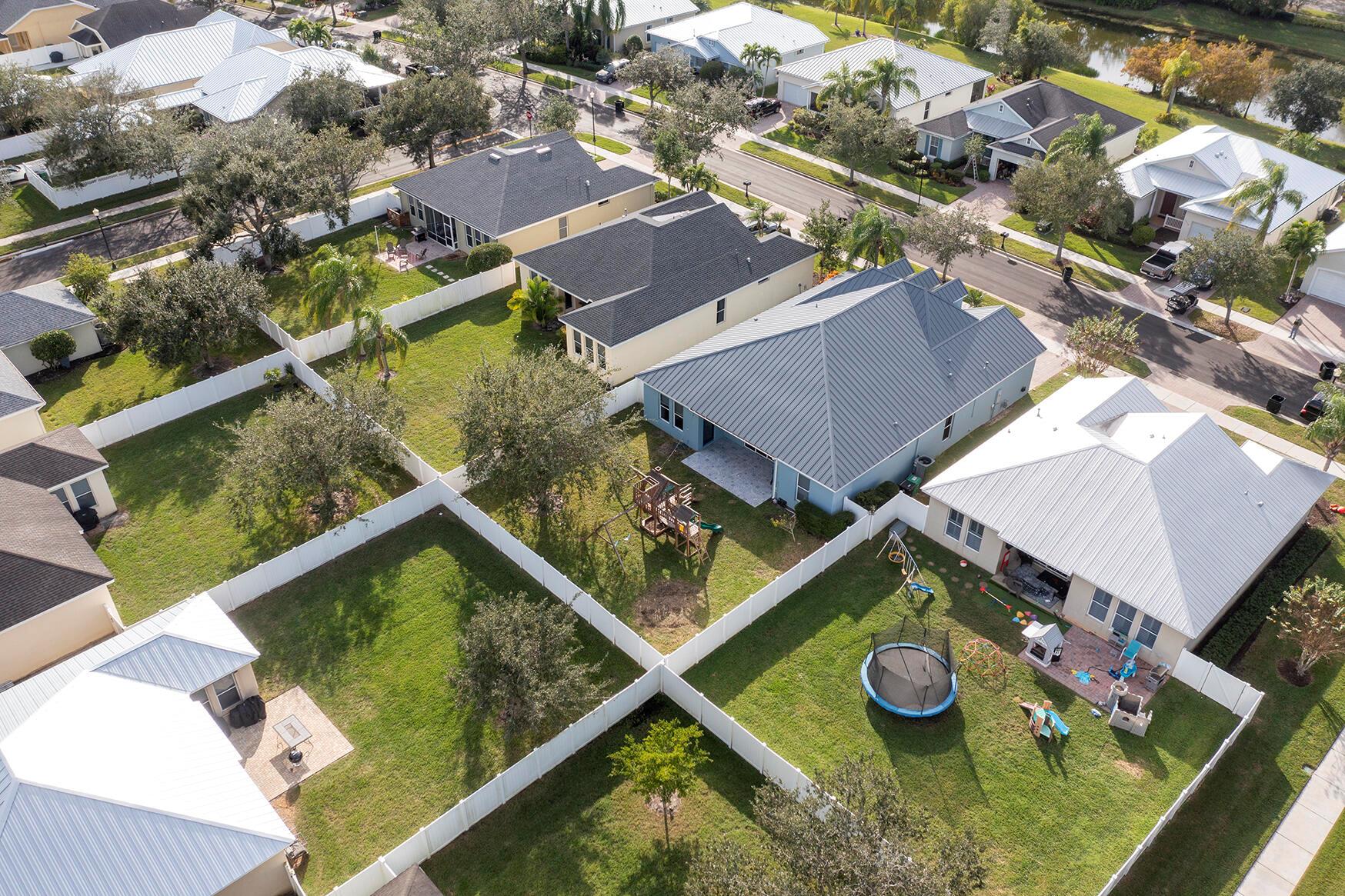 Charming and full of potential, this beautiful home is located in the heart of Bedford Park at Tradition, just a short walk to Tradition Square with restaurants, cafes, shopping, and community events. This 3-bedroom, 2-bath home with a den/office features tile flooring throughout, a bright open layout, and a durable seamless metal roof. A welcoming front porch with swing adds classic charm. The vinyl-fenced backyard is a standout with a HUGE playground and plenty of space for entertaining, pets, or future outdoor living. Opportunity to add a full second story (buyer to verify). Set in a family-friendly, park-filled community.