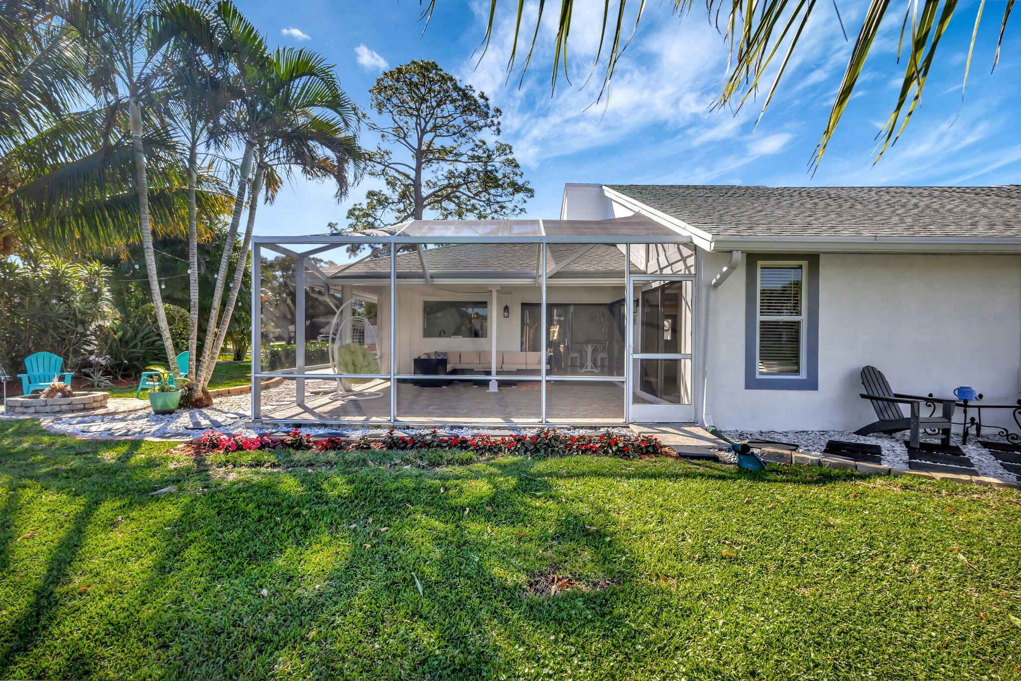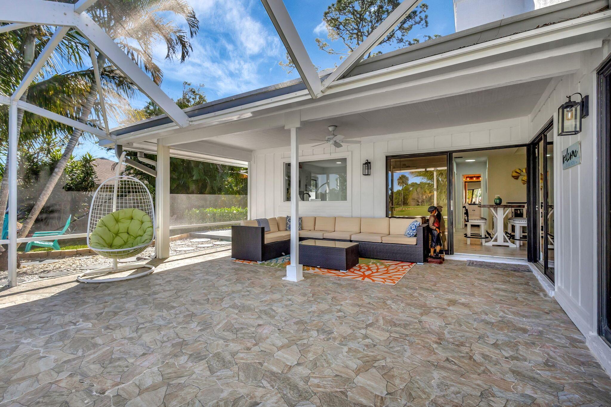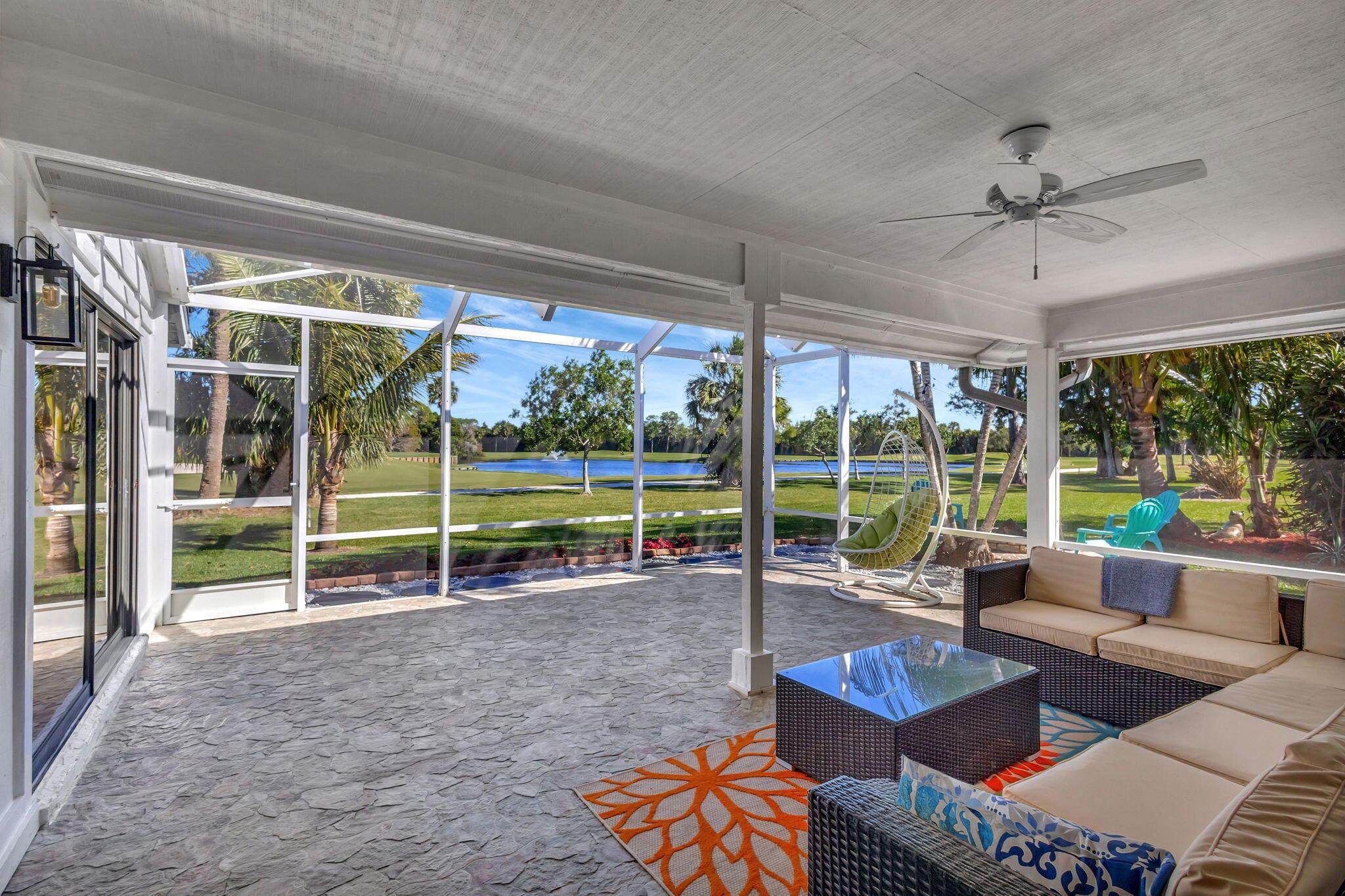 Make this your home! Beautifully renovated throughout with 2 spacious BR 2 modern bathrooms, impact windows with amazing view of the newly renovated 18-hole Fazio golf course. Porcelain tile throughout, oversize screen patio, fire pit with side deck to enjoy your morning coffee surrounding by lush greenery. Total Stucco exterior hurricane and new impact garage door. Eastpointe offers 24hrs security, and resort living lifestyle.